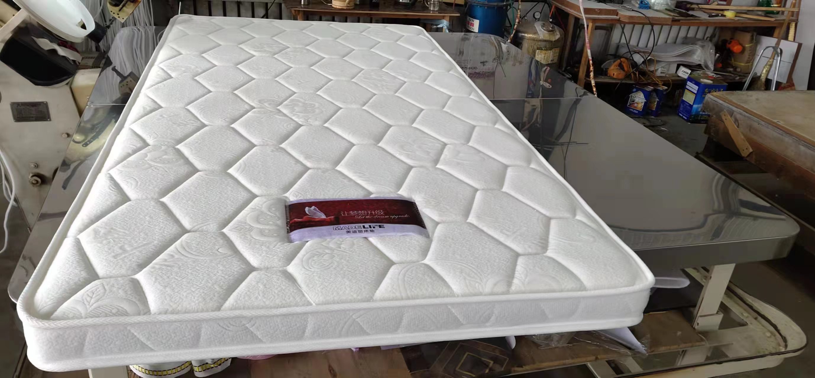 我廠還有自己獨立的床墊品牌,比特福,美迪麗,生產(chǎn)13種床墊,特尺加工。同時為了方便于每個客戶的需求,我們還代銷床墊輔料,裥花面料,各式花樣。